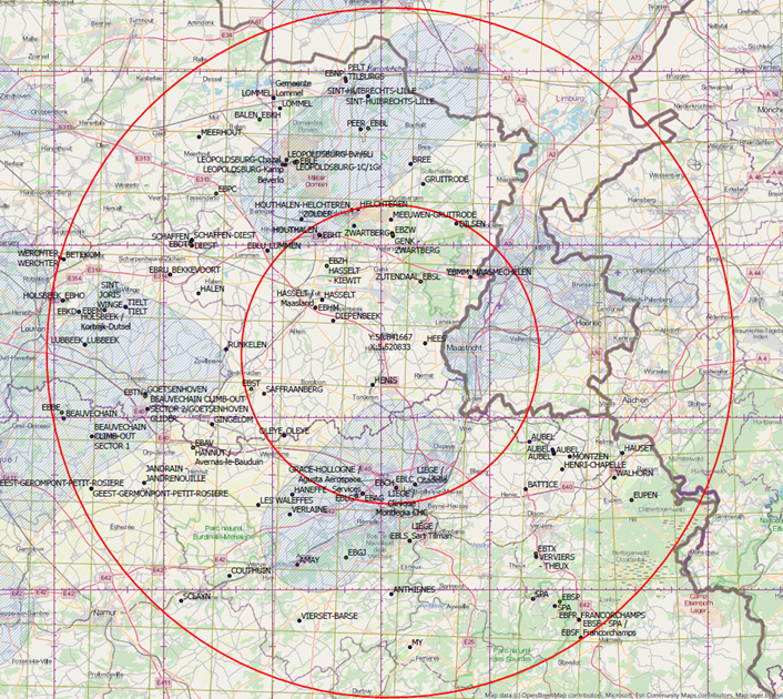 Text:TEMPORARY FLIGHT RESTRICTION ZONE (TFRZ) ALDEN BIESEN ESTABLISHED N505030 E0053115 RADIUS 30NM. AMSTERDAM FIR EXCLUDED CIV AEROBATIC FLIGHTS, CIV RPAS/UAS, CROP DUSTERS, GLIDERS, ULM, MOTORIZED DELTA PLANES, PARAMOTORS, BANNER TOWING, CIV PARADROPS AND MANNED FREE BALLOONS ARE PROHIBITED. ALL FLIGHTS IN THIS ZONE SHALL ESTABLISH AND MAINTAIN TWO-WAY RADIO COMMUNICATION WITH ATS: FOR CLASS C AND D THIS WILL BE AS PUBLISHED IN THE AIP BELGIUM AND LUXEMBOURG FOR CLASS G THIS WILL BE BELGA INFORMATION ON 129.325 MHZ ALL TRAFFIC, INCLUDING LOCAL TRAFFIC, SHALL BE ISSUED A DISCRETE MODE A CODE (DESIGNATED SSR CODE GIVEN BY AIR NAVIGATION SERVICE PROVIDER) OR THE CONSPICUITY CODE A1000 WITH MODE S. VFR FLIGHTS, EXCL SAR, STATE, MEDICAL, HUMANITARIAN, NATO FLIGHTS AND FLIGHTS WITH A SPECIFIC APPROVAL FROM THE CRISIS CELL OF THE FEDERAL PUBLIC SERVICE INTERIOR WITHIN THIS AREA: SHALL BE RADIO AND TRANSPONDER EQUIPPED. SHALL SUBMIT A FLIGHT PLAN TO BRUSSELS ARO (EBBRZPZX) AT LEAST 60 MIN PRIOR DEPARTURE, WHICH WILL ALSO BE SENT TO STEENOKKERZEEL ATCC VIA AFTN (EDYYBAFA AND EBMIZGZF).