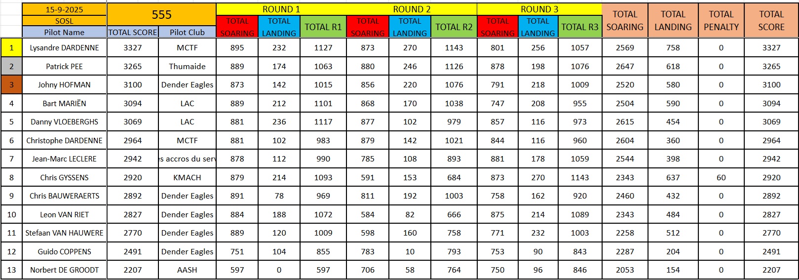 Results Modave 14/09/2025