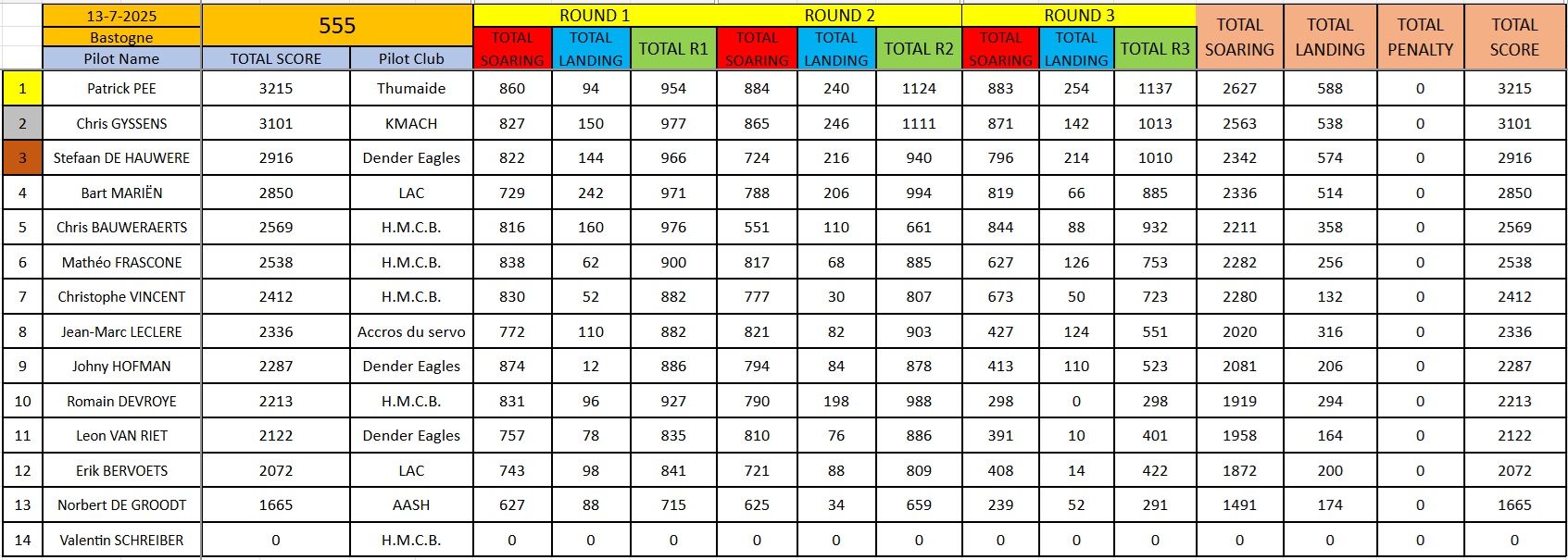Results Bastogne 13/07/2025