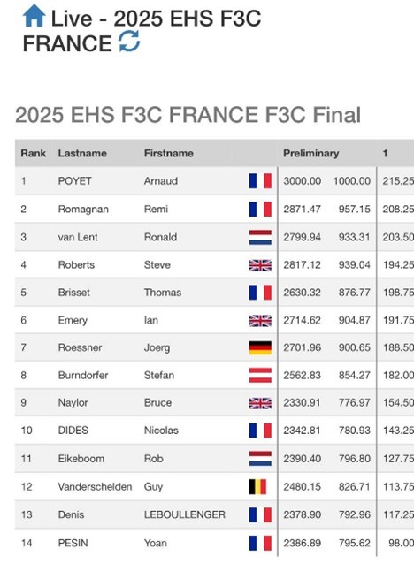Finally a bright morning! The organization decided to fly one P and one F lap instead of two F-laps. Because I hadn't been able to train much on the F-program, I dropped a few places in the rankings. Still, I scored 210 points in the P-round, which underlines my consistent level. I close this EHS with a good feeling and congratulate the top three: